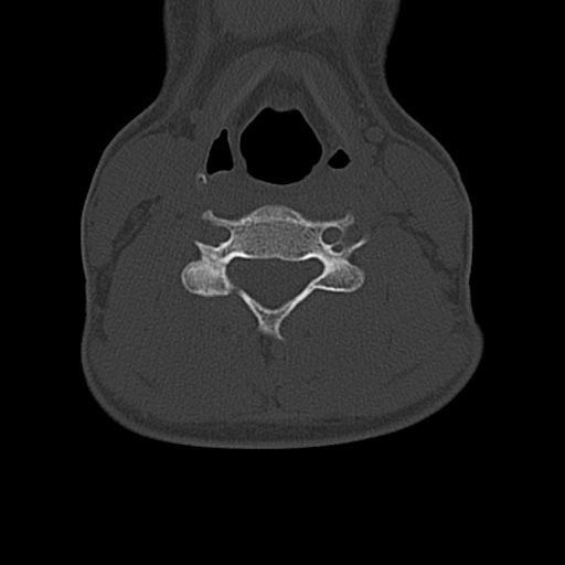 An x-ray of the right shoulder was negative and an MRI of the right shoulder showed no evidence of a rotator cuff tear. X-rays of the cervical spine showed straightening of the cervical lordosis and concern for a C5 lamina fracture. A CT of the cervical spine confirmed a fracture of the right C5 lamina extending into the right C5 facet Case Photo #1 . There was associated mild widening and mild unilateral subluxation of the right C4-C6 facet joints. An MRI of the cervical spine showed a small C5-C6 posterior disc osteophyte complex with moderate bilateral neuroforaminal narrowing. At C6-C7 there was a small central disc protrusion with no significant spinal canal narrowing. The nerve conduction studies revealed electrophysiologic evidence consistent with an active right C5 radiculopathy. There was no evidence of a focal entrapment neuropathy, right ulnar sensory response was normal and right median to radial sensory comparison study was normal.