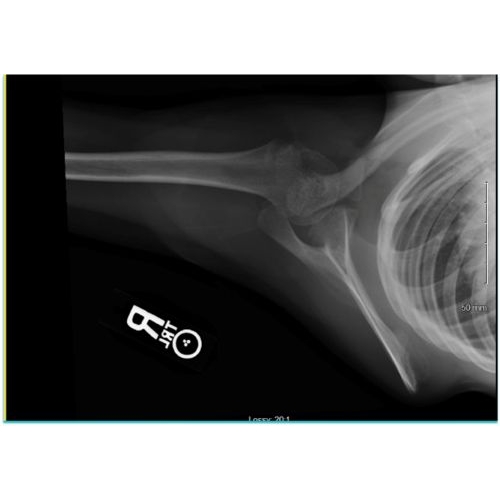 Due to the age of the fracture and level of symptoms upon evaluation, as well as the absence of clear scapular winging, the decision was made to manage this fracture conservatively. The patient was placed back in his sling for two weeks with the recommendation to practice daily elbow range of motion and was scheduled to follow-up with repeat x-rays four weeks after his initial visit.