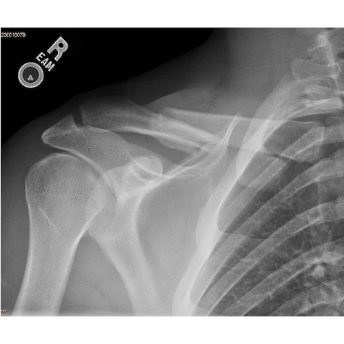 X-ray clavicle (Initial): Overlapping fracture middle one third right clavicle. Case Photo #1